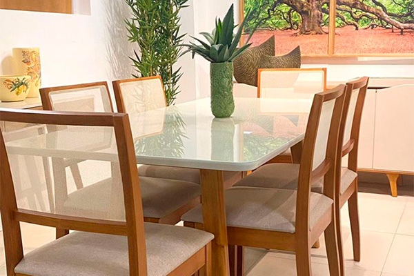 Utilizamos materiais premium, madeira maciça certificada e acabamentos de excelência, garantindo resistência e elegância em cada linha. Trabalhamos com tecnologia moderna e processos de produção eficientes, o que nos permite entregar móveis de alto padrão com ótimo custo-benefício.